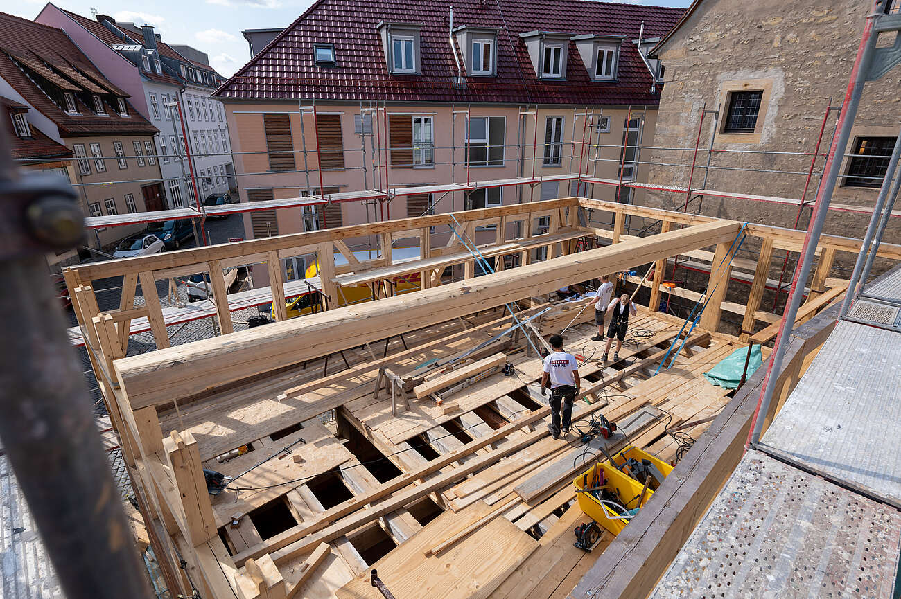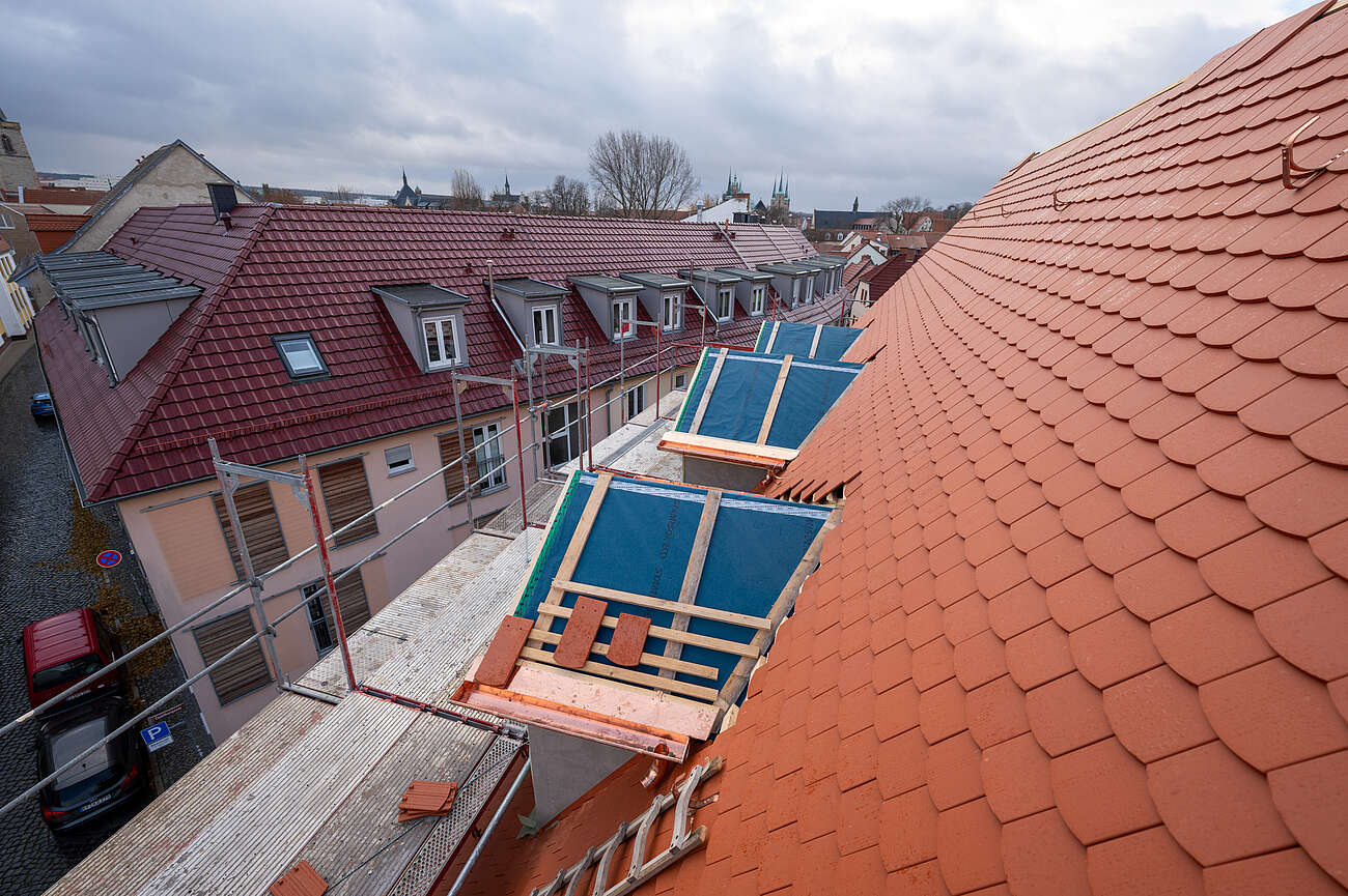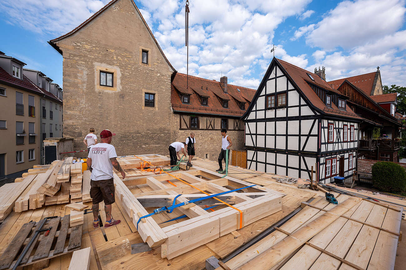„Nach dem Vorbild der Erfurter Renaissance wurde hier historische Bauweise und Gestaltung mit modernem Wohnkomfort verbunden“, heißt es in der Jury-Begründung. Das Erdgeschoss erhielt Sandsteineinfassungen an Fenstern und Türen, während die oberen Geschosse als echte Fachwerkkonstruktion mit Auskragung und profilierten Balkenköpfen ausgeführt wurden.