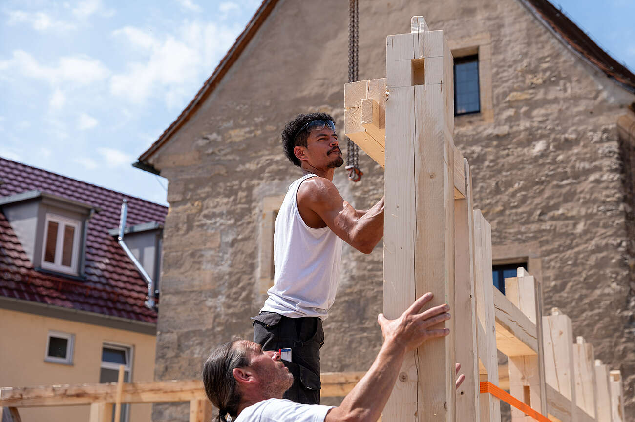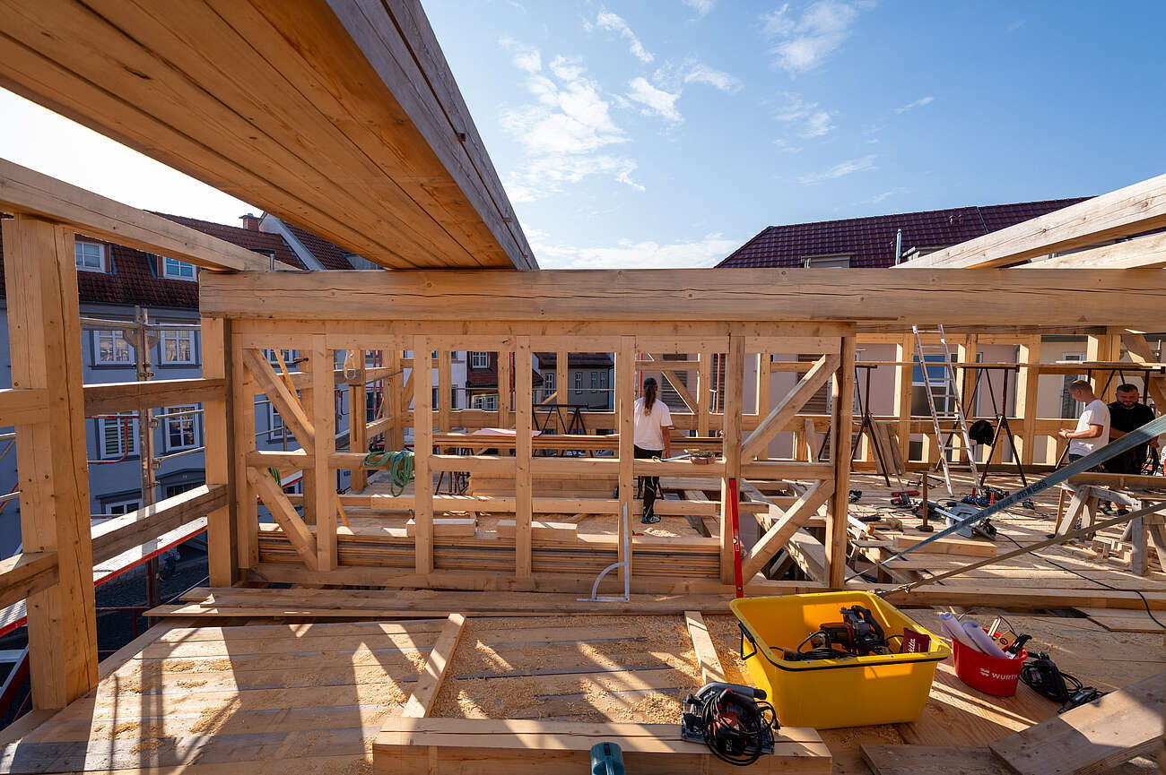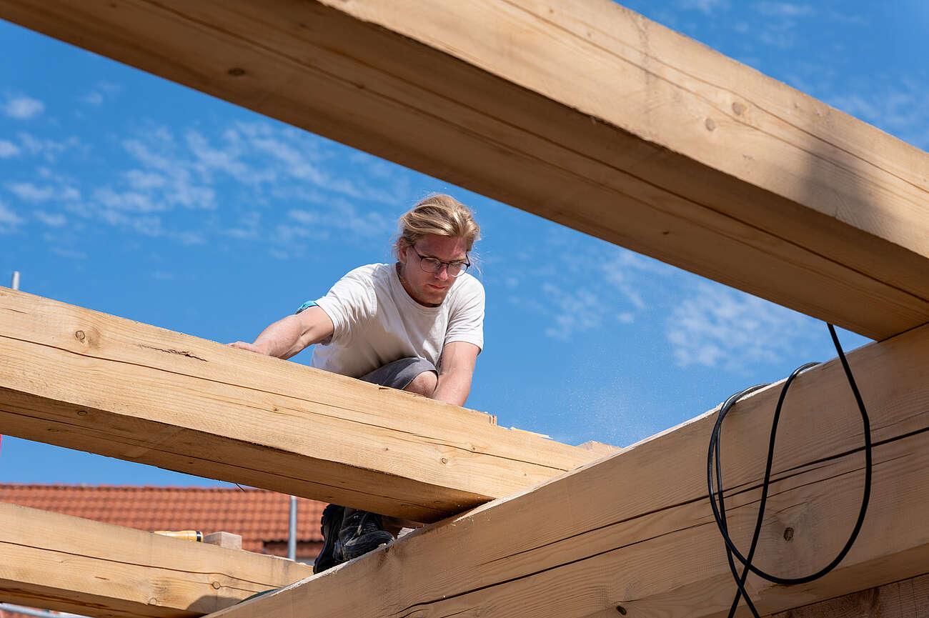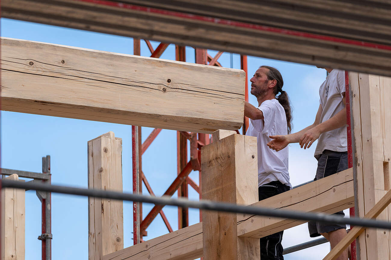 Hier konnte ich nach freier Zeiteinteilung die Bauarbeiten beobachten und den Fortschritt dokumentieren. Entstanden sind nicht nur architektonische Fotografien, sondern auch von Mitarbeitern, die dieses preisgekrönte Haus in Fachwerkbauweise aufgebaut haben.