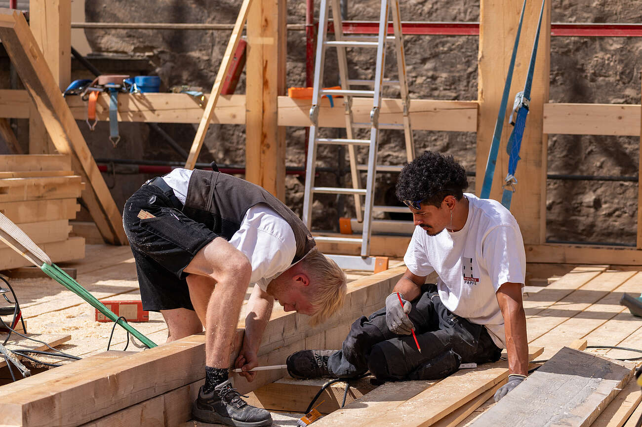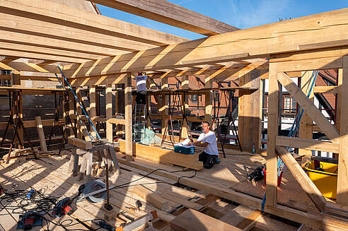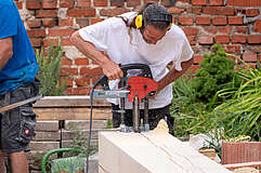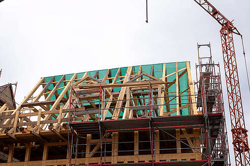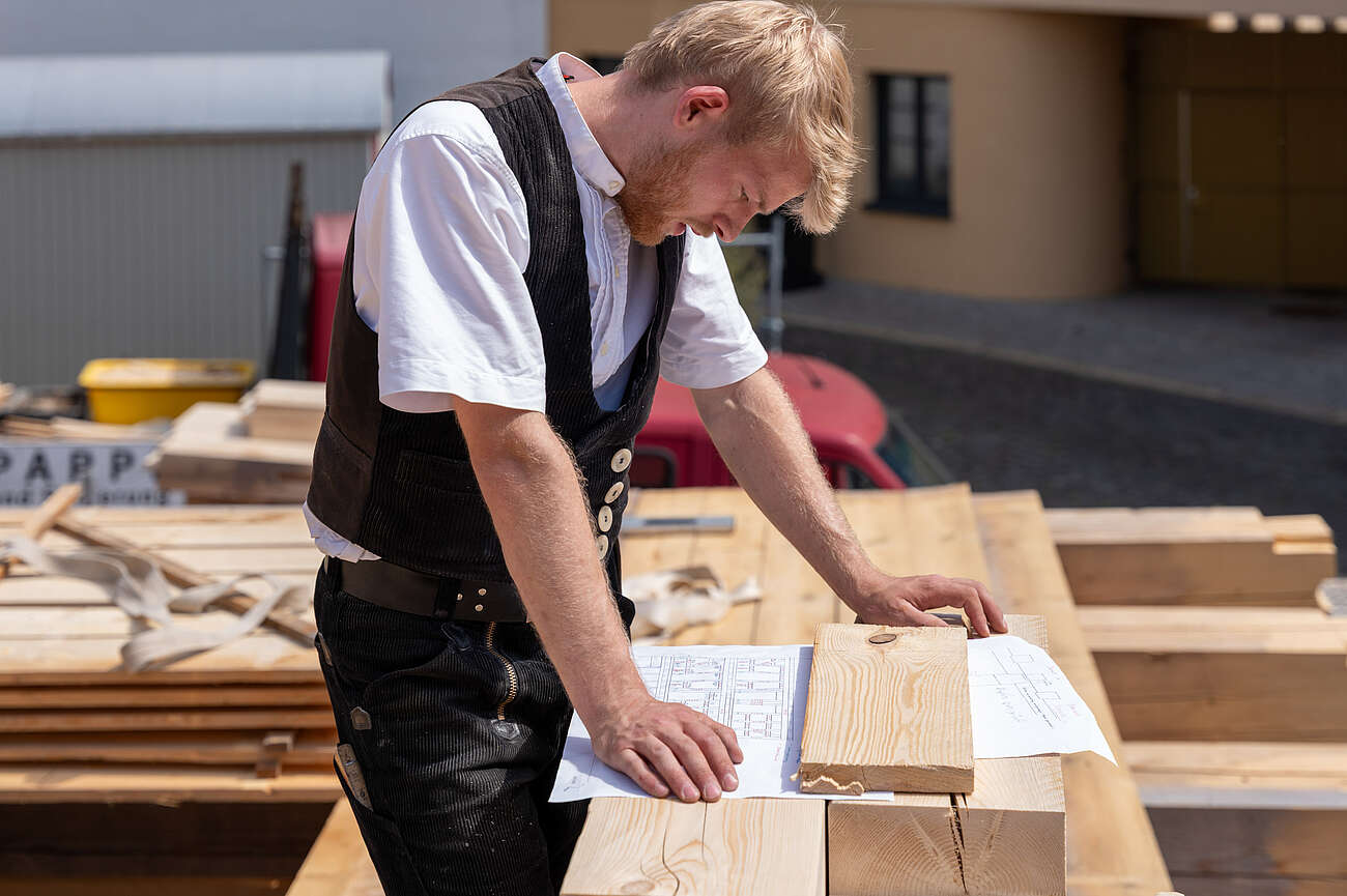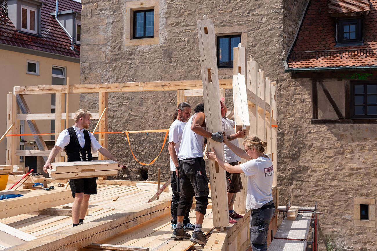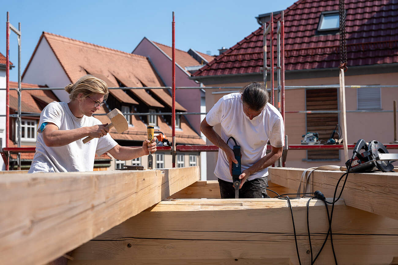 Hier konnte ich nach freier Zeiteinteilung die Bauarbeiten beobachten und den Fortschritt dokumentieren. Entstanden sind nicht nur architektonische Fotografien, sondern auch von Mitarbeitern, die dieses preisgekrönte Haus in Fachwerkbauweise aufgebaut haben.