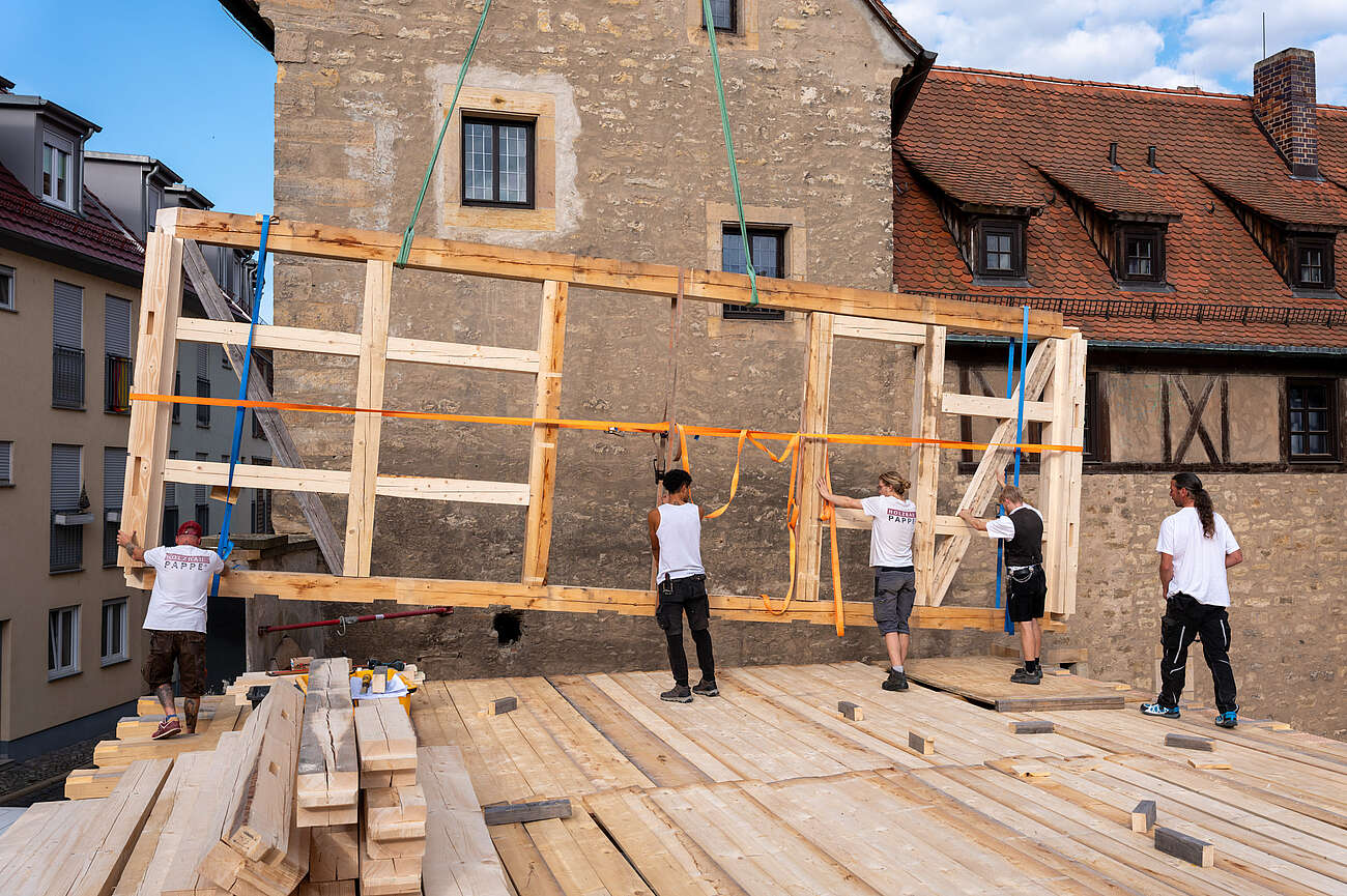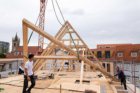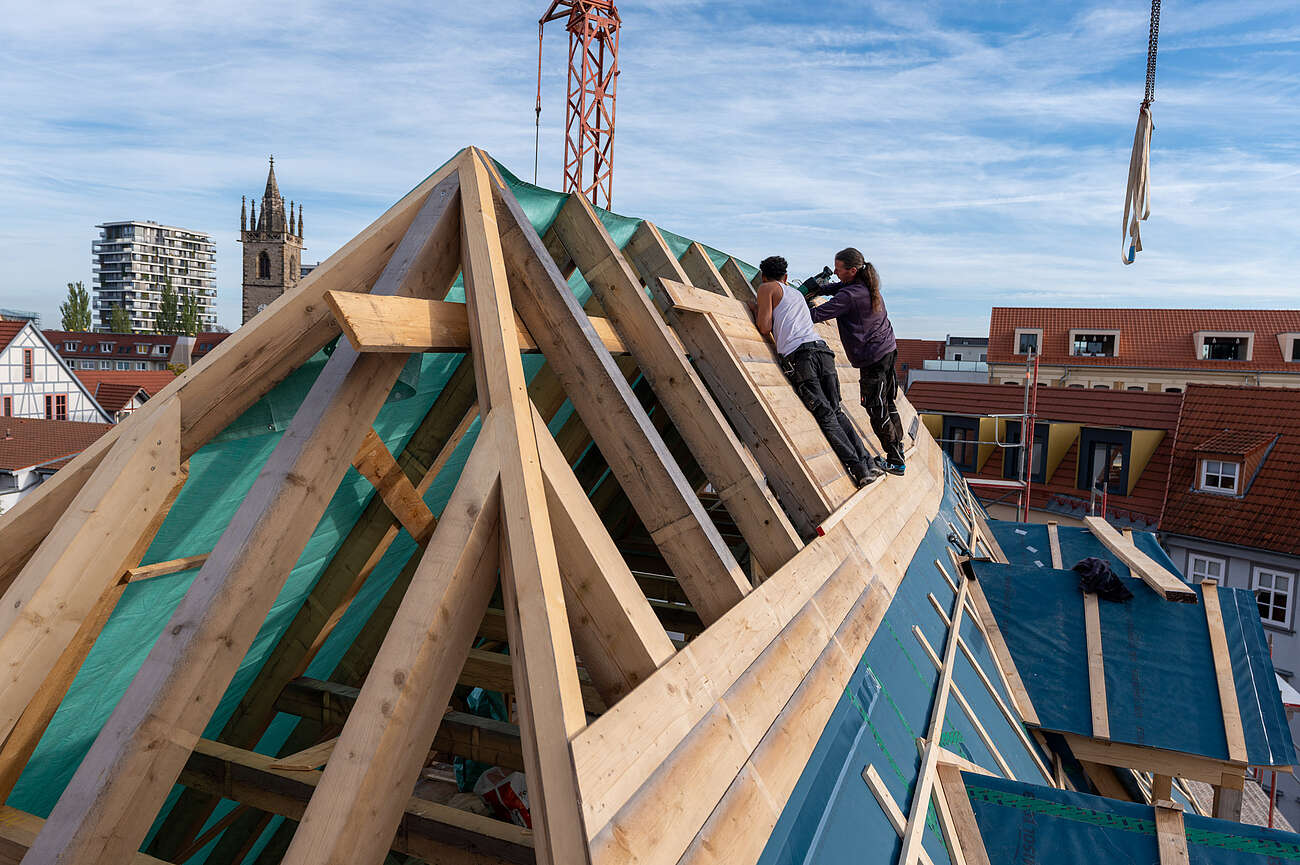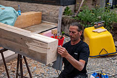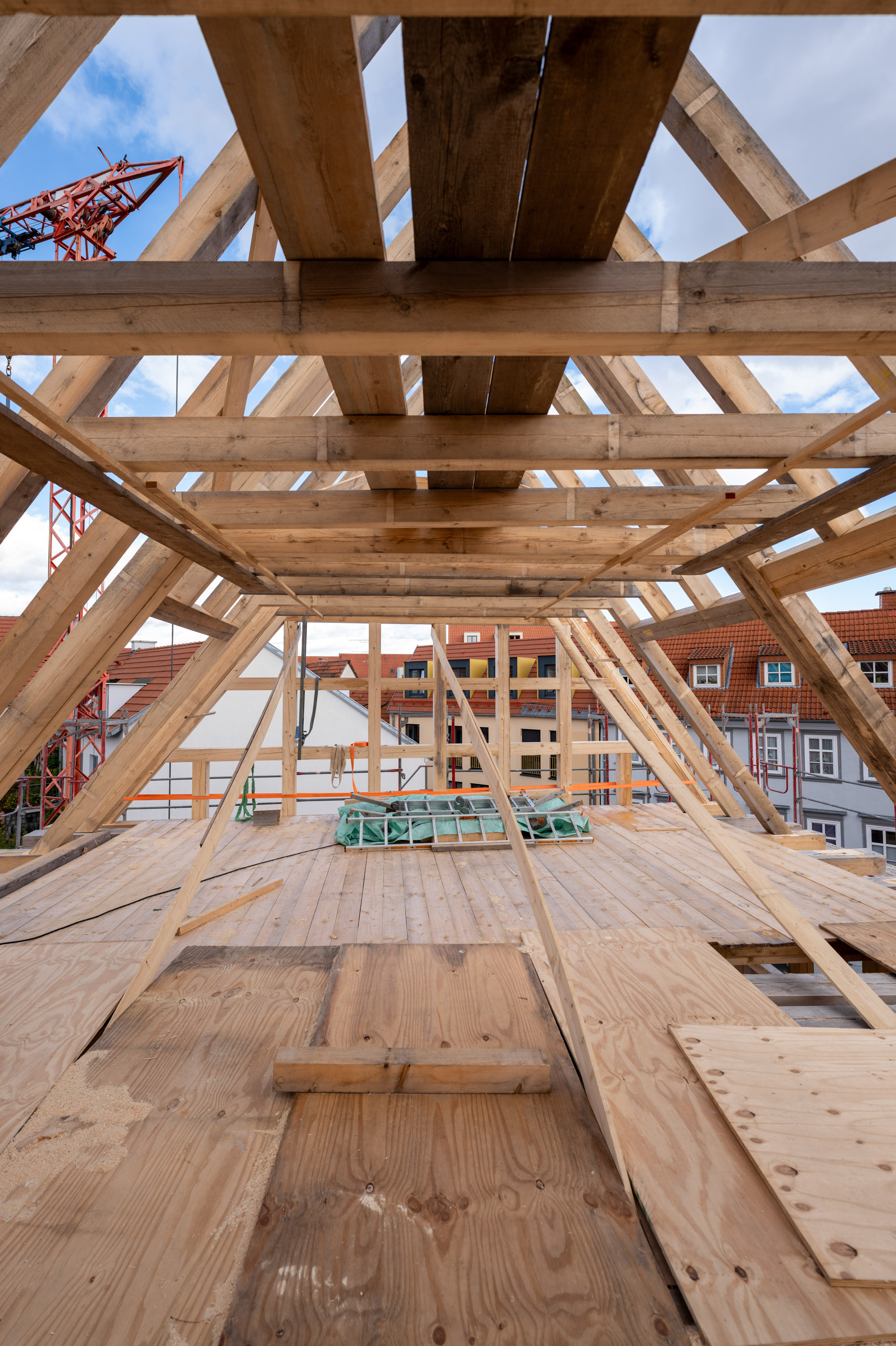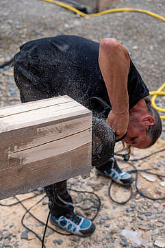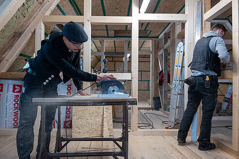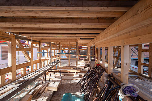 Hier konnte ich nach freier Zeiteinteilung die Bauarbeiten beobachten und den Fortschritt dokumentieren. Entstanden sind nicht nur architektonische Fotografien, sondern auch von Mitarbeitern, die dieses preisgekrönte Haus in Fachwerkbauweise aufgebaut haben.