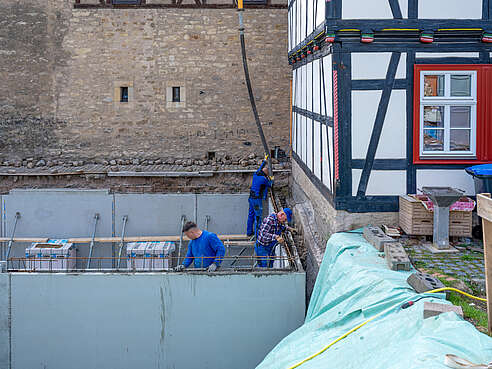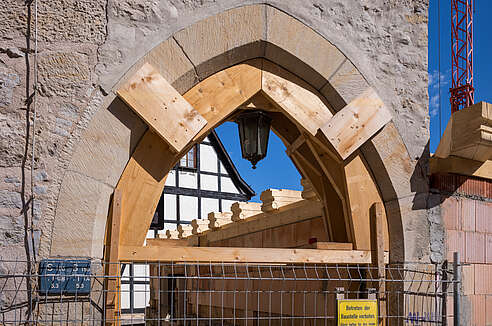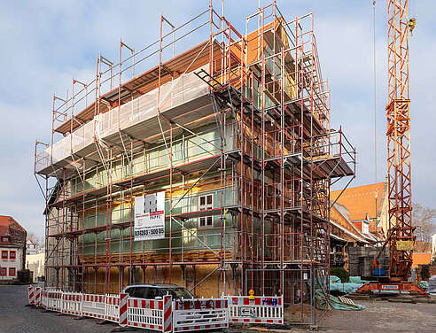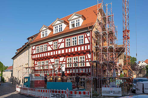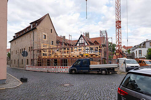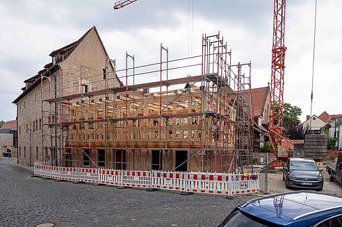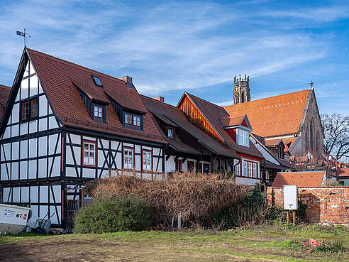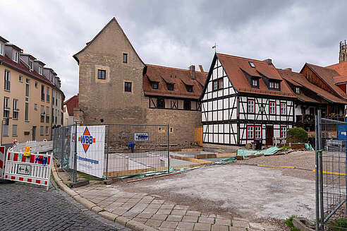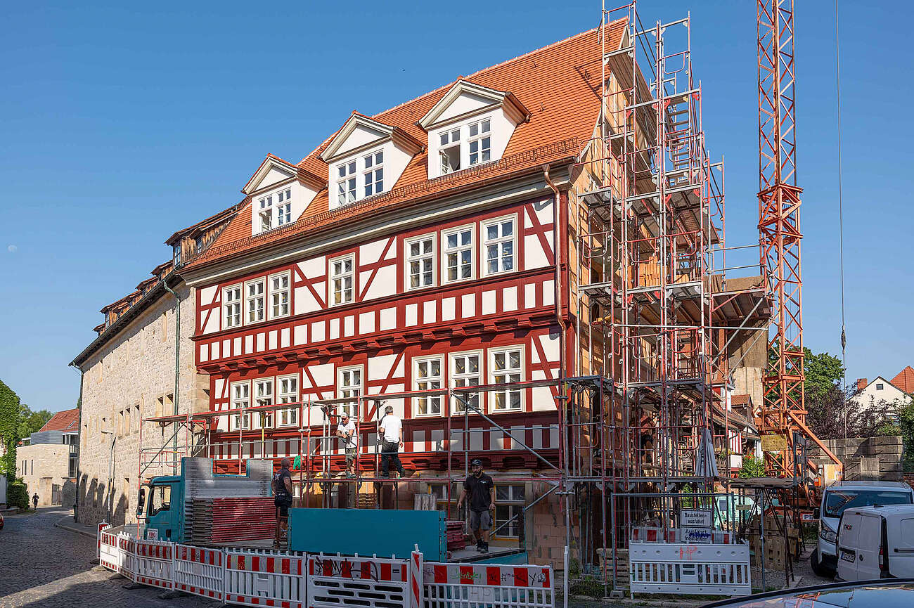 Der Fachwerkbau ist ein neu errichtetes Wohnhaus, das sich so harmonisch in die historische Umgebung rund um das Augustinerkloster einfügt, dass es kaum als Neubau wahrgenommen wird. In Anlehnung an die alte Bebauungsstruktur – der Vorgängerbau wurde zu DDR-Zeiten abgerissen – entstand hier auf einer Brachfläche ein Gebäude, das die historische Identität des Ortes sensibel aufgreift. Der Name des ursprünglichen Hauses wurde bewusst übernommen.