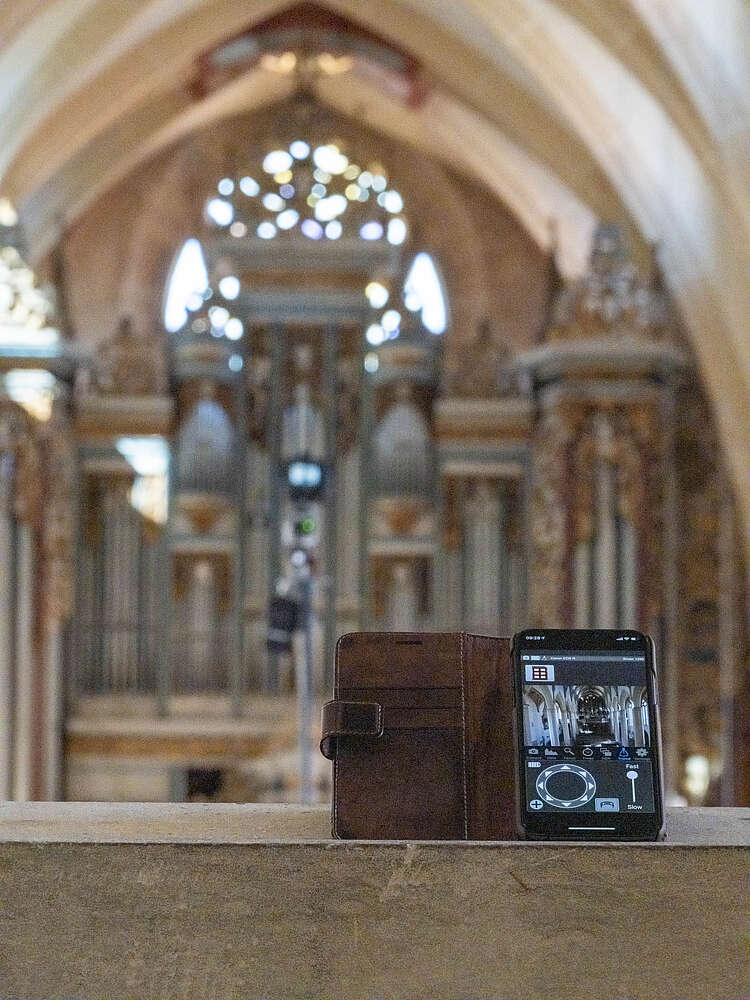 Das Stativ kann bis in eine Höhe von 7,20 m gefahren werden, die Kamera wird dann über das Tablet oder Smartphone gesteuert. Das Vorschaubild, die Kameraeinstellungen und die Auslösung erfolgt vom Boden aus.